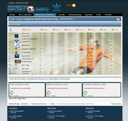 • Projekt leírása: Győri Kispályás Bajnokságok lekövető Sportinformációs rendszer. Komplex eredménykövető és kijelző rendszer.