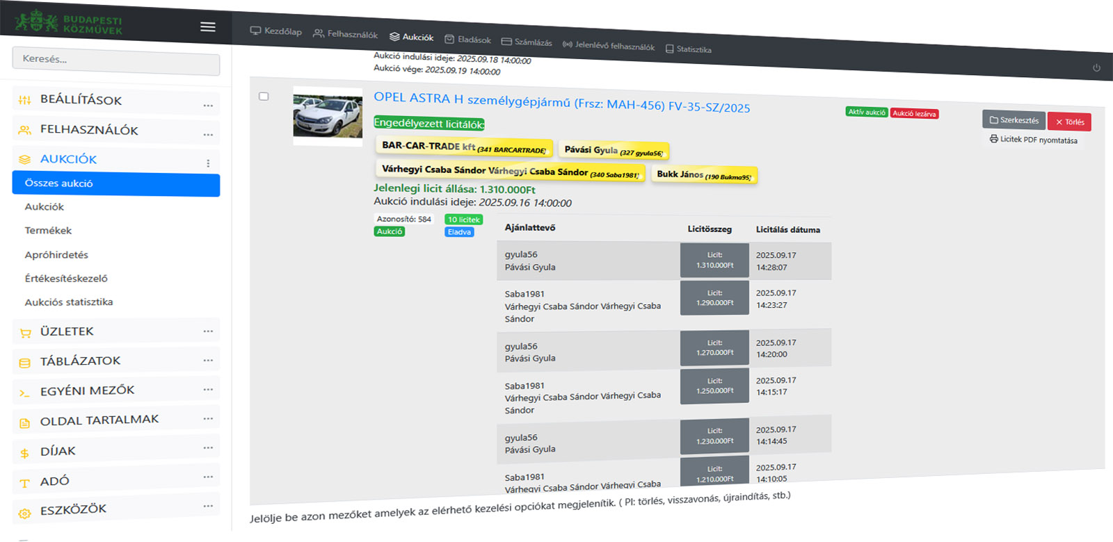 - Hagyományos beszerzési aukciók indítása